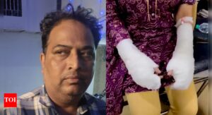 Akil Khan, woman being treated at a hospital after sustaining burn injuries on her hands in the alleged acid attack....