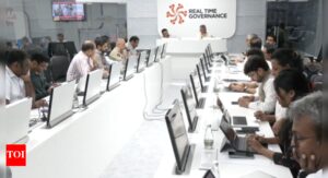 CM Chandrababu Naidu reviews impact of Cyclone Montha from the RTGS control room.(Image credits: Screen grab from ANI video) NEW...