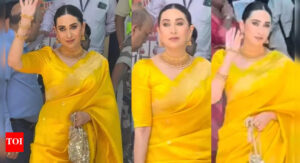 Karisma Kapoor celebrates Navratri in stunning yellow saree; spotted at airport amid legal battle with Priya Sachdev over Sunjay Kapur’s estate | Hindi Movie News