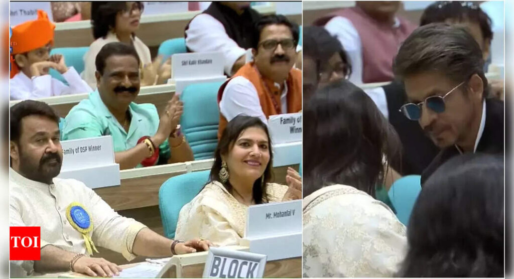 As Mohanlal arrived with his wife Suchitra Mohanlal to receive the Dadasaheb Phalke Award, Shah Rukh warmly greeted the couple. In a moment that captured hearts, he arranged a chair for Suchitra, waiting patiently until she was comfortably seated before taking his own place.