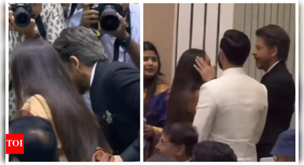 For the occasion, she wore a brown silk saree with a golden border, paired with a half-sleeved blouse. But the highlight was Shah Rukh’s sweet gesture — as Rani took her seat, he carefully held her saree’s pallu to make sure it didn’t get caught in the drape.In another clip, Shah Rukh was seen sweetly fixing Rani’s hair while chatting with her, and even gave her a gentle kiss on the cheek. His affectionate gesture once again showed why he is adored as a true star.