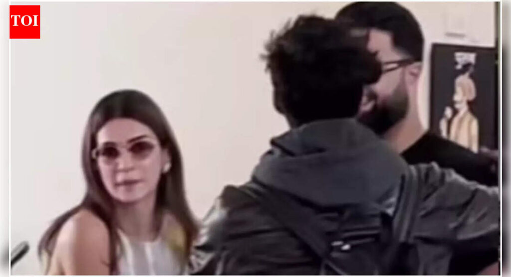 In the footage, Kriti travels through the airport surrounded by security. She wears a vibrant checkered kurta set featuring a white yoke, along with sunglasses and open-toe heels. She carries a black jacket while holding her phone and travel papers. At one point, she stops momentarily as others talk and organize, then proceeds to the exit.In another airport lobby photo, Kriti talks to a casual man in a black T-shirt and jeans near staff handling luggage. Social media reacts again, calling him Kabir and reviving relationship rumors. With no comment from Kriti or Kabir, repeated sightings keep the gossip going.