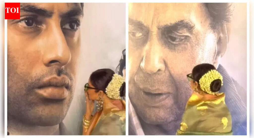 Another moment from the screening that went viral online, showed Rekha bowing respectfully before a poster of late actor Dharmendra displayed at the venue. The actress was also seen posing before the poster for photos.