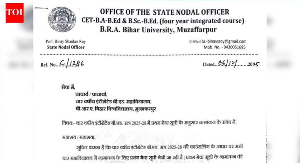 Bihar CET INT BEd merit list 2025: The first Merit List for the Bihar Four-Year Integrated Bachelor of Education (B.Ed) Programme for the 2025-28 session has officially been released. As per the latest notice, the merit list has been sent to all four participating colleges for the admission process.According to the notice, admissions based on the first Merit List will be conducted from 8 December, 2025 to 18 December, 2025. All colleges have been instructed to complete the admission process within this period and submit the list of admitted students to the office of the undersigned by 19 December, 2025.This update follows the earlier release of the Bihar B.Ed Notification 2025 for the Combined Entrance Test Integrated B.Ed (CET INT-B.Ed 2025), conducted by Babasaheb Bhimrao Ambedkar Bihar University (BRABU) for entry into B.A.–B.Ed and B.Sc.–B.Ed courses across the state.