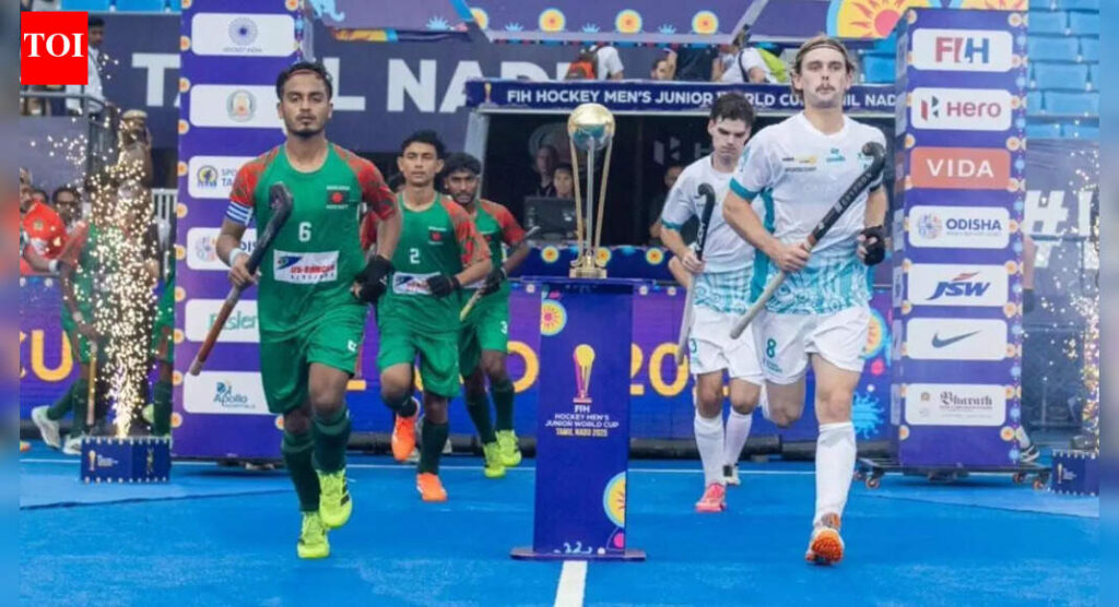 CHENNAI: Bangladesh stepped into their maiden men’s Junior World Cup hockey campaign with a spark hard to ignore. Against a heavyweight team like Australia in a Pool F clash at the Mayor Radhakrishnan Stadium, the young side stitched together moments of fearless intent and bold skill — a performance that firmly signalled they were not here to make up the numbers. World No. 20 Bangladesh eventually went down 3-5, but their spirited fight won them admiration. Drag-flicker Amirul Islam (14th, 42nd, 59th minute) scored all three goals via penalty corners and was equally impressive in defence with timely interceptions. Just three months into his tenure, Dutch coach Siegfried Aikman has clearly injected belief and structure into this group. After conceding early, Bangladesh’s defence tightened, and Amirul levelled with a fierce drag-flick. The second quarter, however, saw Australia turn on the pressure, scoring thrice through Ian Grobbelaar (18th), Dylan Brick (22nd) and Duncan Jackson (24th). As the skies opened up and the outfield slowed significantly, Bangladesh adapted beautifully. They dominated the third quarter, with Amirul converting his second penalty corner. Australia struck again through Daykin Stanger (48th) before Amirul completed his hat-trick to narrow the gap. In Madurai, holders Germany blanked Canada 7-0.