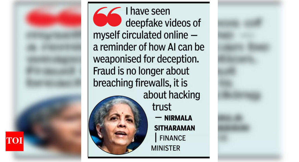 MUMBAI: Finance minister Nirmala Sitharaman on Monday cautioned that while technology can drive global good, it can also be weaponised, posing significant risks to society and financial systems. She also called on the fintech industry to balance innovation with responsibility, ensuring growth with profitability, and resilience.Speaking at the Global Fintech Fest here on Tuesday, she noted how AI and other emerging technologies are increasingly being used to deceive and manipulate. “I have seen deepfake videos of myself circulated online – a reminder of how AI can be weaponised for deception. Fraud is no longer about breaching firewalls; it’s about hacking trust. Criminals now use AI to mimic voices, clone identities, and create lifelike videos,” said Sitharaman.The minister’s warning on weaponisation of technology comes at a time when geopolitical tensions are resulting in developed countries blocking access to technology, including those in semicounductor and AI. In the 1990s, the US blocked the export of supercomputers to India over concerns that they could be used for nuclear weapons development, prompting India to develop its own high-performance computing capabilities.