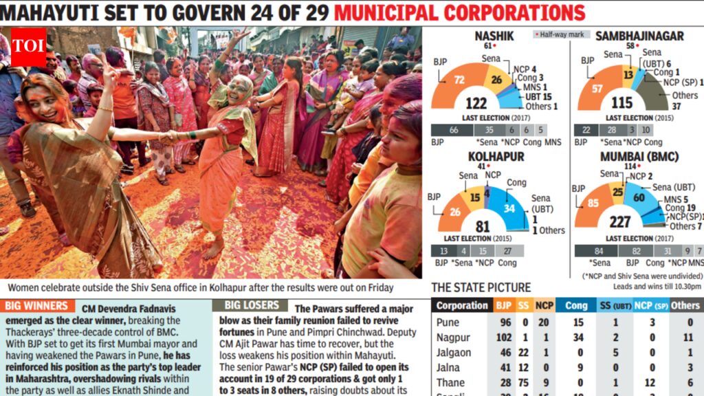 Maharashtra civic polls: Saffron sweep; BJP single largest in Nashik & Sambhajinagar, wins Kolhapur with Sena | Nashik News