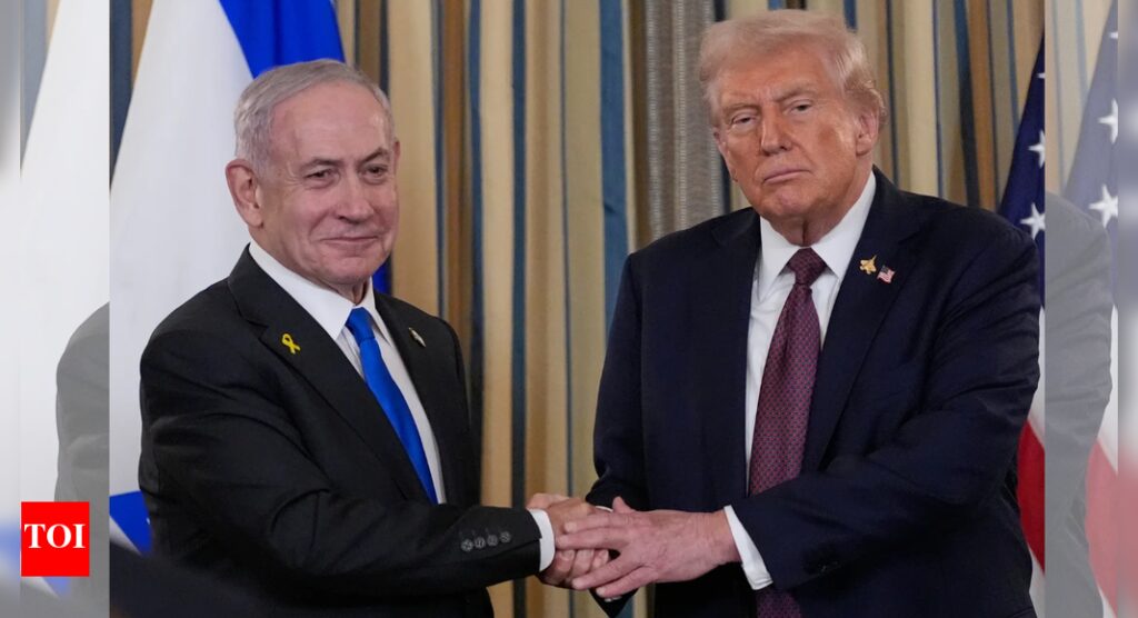 Israel’s Prime Minister Benjamin Netanyahu shakes hands with President Donald Trump (Image credits: AP)