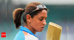 India's captain Harmanpreet Kaur trains (AP Photo/Aijaz Rahi) India face crucial challenge as they prepare to face defending champions Australia...