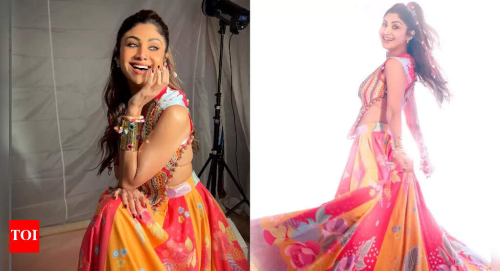 With Navratri beginning today, the season of Garba nights, dandiya sticks, and endless twirls is finally here. And trust Shilpa Shetty to step in just in time with a look that makes us want to raid our wardrobes immediately. She recently shared a video on Instagram, and her outfit wasn’t just pretty, it was pure festive energy wrapped in colour. Shilpa’s yellow and red floral lehenga is the kind of piece that makes you want to spin around without stopping. Flowing, lightweight, and vibrant, it’s perfect for anyone planning to dance their heart out. The real magic, though, came from her choli. Backless, sleeveless, and multi-coloured, it gave the look that cheeky, modern twist while still sitting beautifully within the festive vibe. Navratri style is always about balance, tradition on one hand, playfulness on the other and she nailed it.
